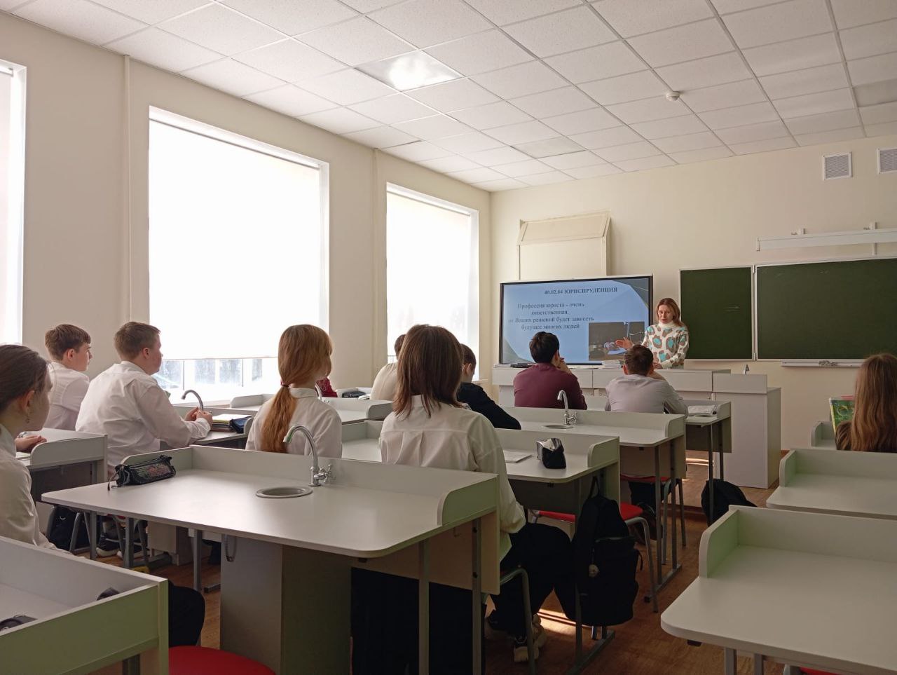 25 апреля 2025 года с учениками 9 Б класса МОУ СОШ 9 г.Сердобска проведено мероприятие в рамках работы по профориентации. На встрече преподаватель Сердобского филиала ПГУ Гаврилова Е. В. представила презентацию направления подготовки "Юриспруденция"